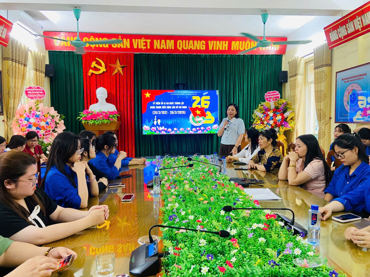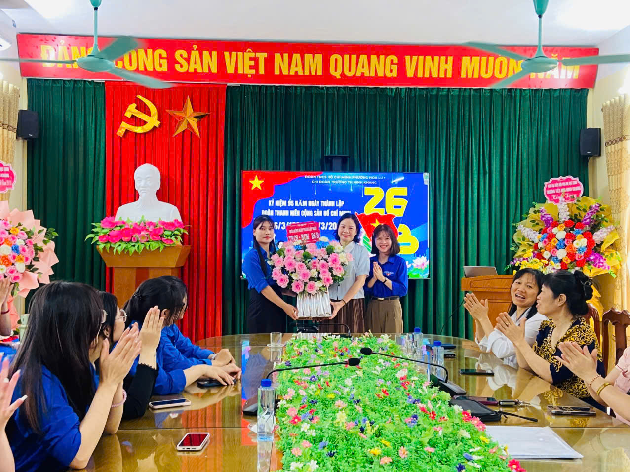 BGH tặng hoa chúc mừng Chi bộ Đoàn trường nhân kỉ niệm 95 năm ngày thành lập Đoàn